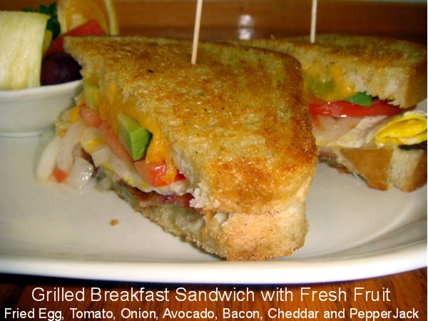 | 21st-27th | Grilled Breakfast SandwichWith Fresh Fruit With Bacon, Cheddar, Pepperjack, Avocado, Fried Egg, Onion And Tomato On