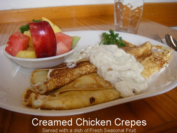 Two Crepes Filled With A Creamy Chicken Mixture. Served With Fresh Fruit 8.25 |