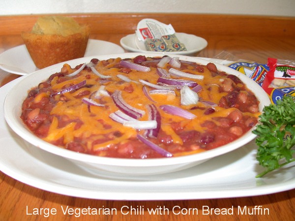 A Large Bowl Of Meat-free Chili Kidney, Pinto And Black Eyed Pea With Special Seasonings Insure A Hearty Flavorful Meal 6.40 |