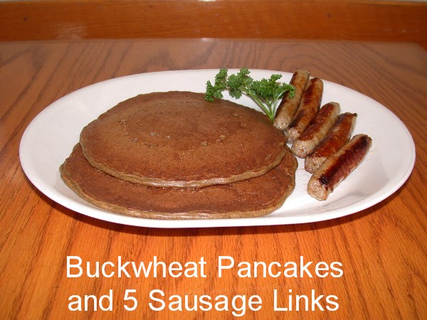 Two Of Our Delicious Buckwheat Pancakes And Served With 5 Link Sausages. 6.35 |