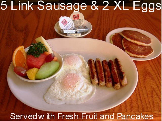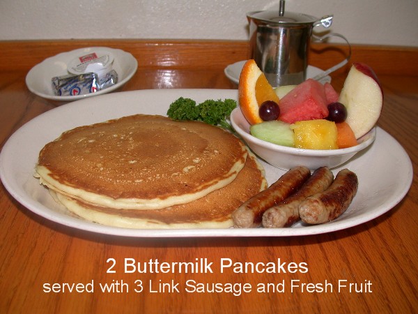 2 Of Our Buttermilk Pancakes Served With Fresh Fruit And 3 Link Sausage 6.35 |