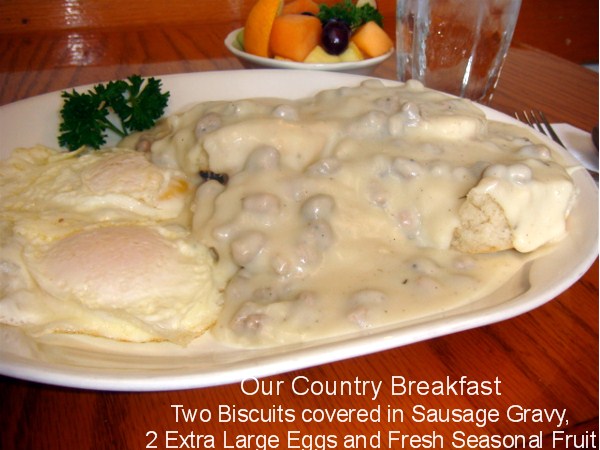 2 Biscuits 'n Gravy 2 Extra Large Eggs And Fresh Fruit 7.20 |