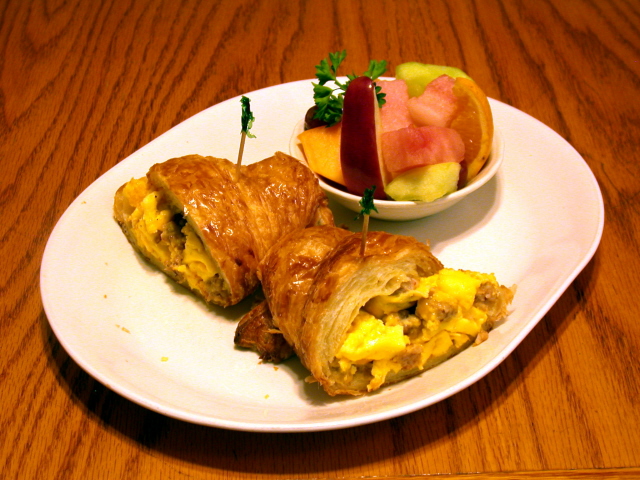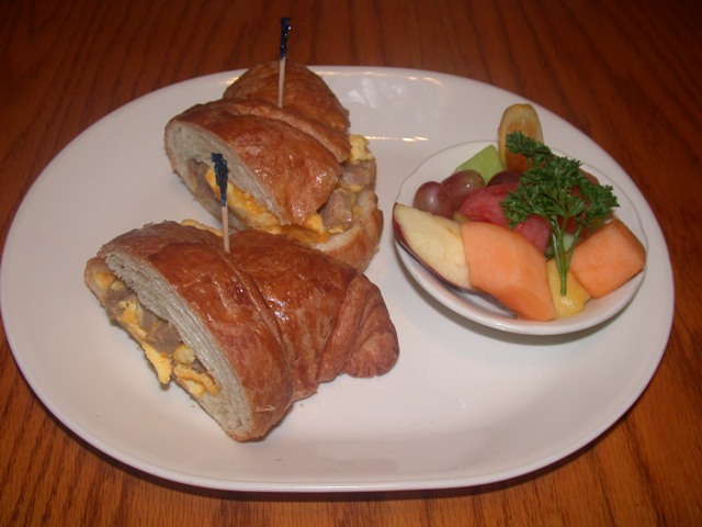 A Croissant Filled With Scrambled Eggs, Italian Sausage And Melted Swiss Cheese. Served With Fresh Fruit. 7.50 |