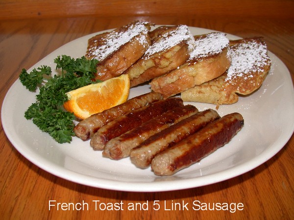 Thick Slices Of Bread Dipped In A Rich Egg Batter. Served With 5 Sausage Links 7.95 |
