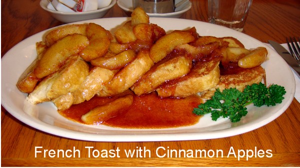 6 Half Slices Of Thick French Toast Covered With Cinnamon Apple Mixture 6.25 |