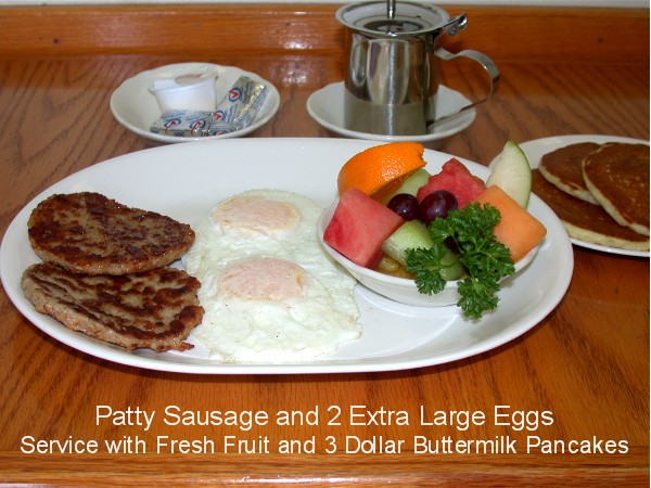 Ye Old Standby.... Served With 3 Dollar Buttermilk Pancakes And Fresh Fruit. 7.25 |