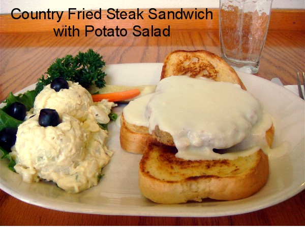 An Open Faced Country Fried Steak Sandwich Topped With Cream Sauce And Served With A Garden Green Salad 7.25 |