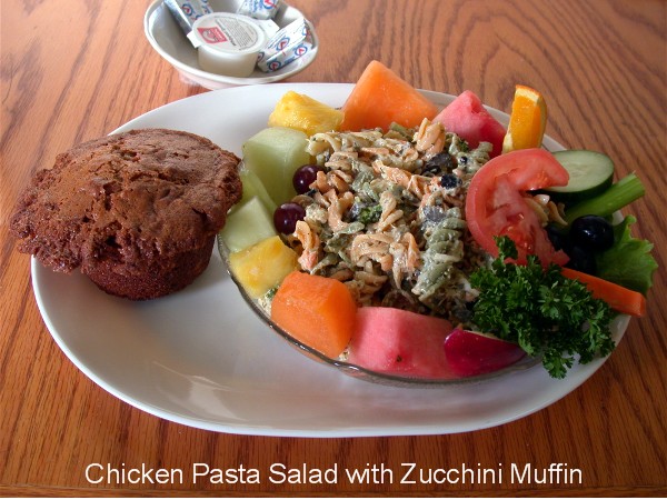 Tender Rotini Noodles, Chicken Breast Meat, Veggies, Fresh Fruit And Zuchinni Nut Muffin. 7.75 |