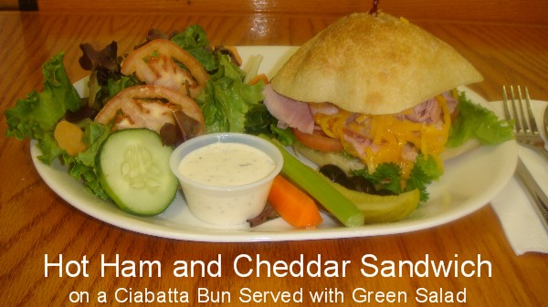 Hot Turkey And Ham Sandwich On Sourdough With Cheddar Cheese, Lettuce,and Tomatoes. Served With Green Salad. 8.75 |