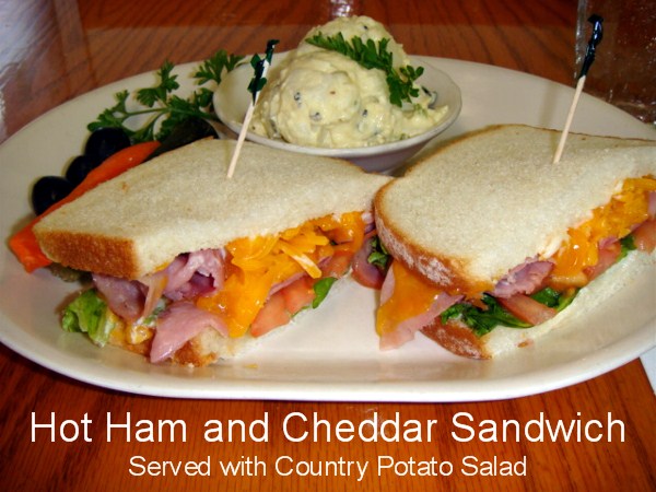 Hot Ham & Cheddar Cheese On A Bun With Potato Salad