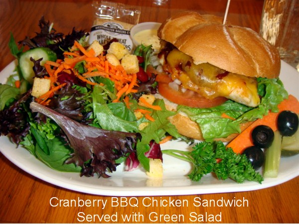 A Grilled Chicken Breast With Bbq Sauce,tomato,lettuce,mayo And Cheddar On A Bun. Served With A Garden Grean Salad. 9.75 |